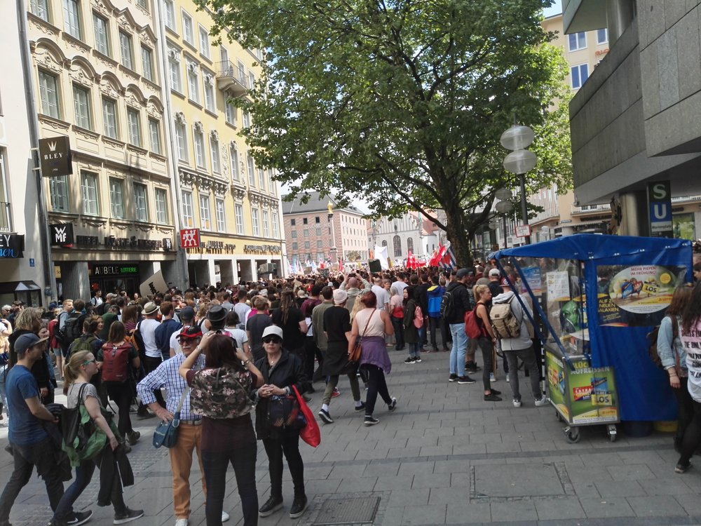 Mehrere Mitglieder unseres Ortsverbandes unterstützten heute die 30.000 (Angaben der Polizei) bis 40.000 (Angaben der Veranstalter) Demonstrationsteilnehmer in München gegen das geplante neue Polizei-Aufgaben-Gesetz (PAG), machten kräftig Werbung für unsere eigene Demo in Murnau am 12.05.2018 / 16:00 Uhr im Murnauer Kulturpark und konnten nebenbei noch ein Neumitglied werben!