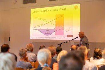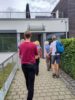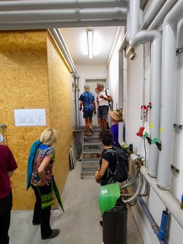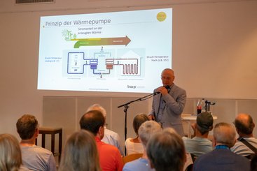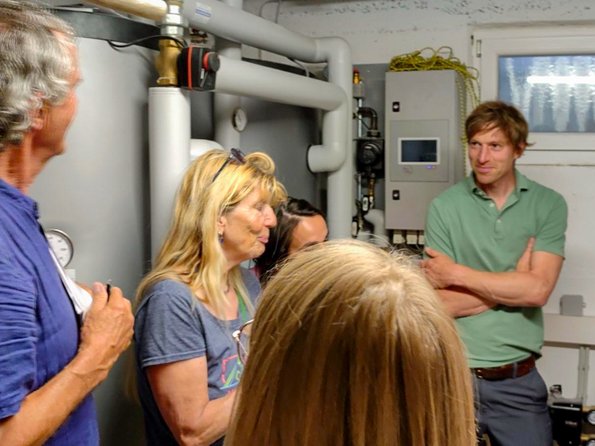 15 Interessierte folgten den sachkundigen Ausführungen des Hausbesitzers, der sehr anschaulich den Weg von der ersten Überlegung bis zur Realisierung und Optimierung schilderte, mit großem Interesse.