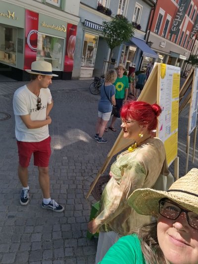 Puh war das heiß! Und schön und heiß und interessant und heiß - Und darum ein großes Danke! Bei herrlichstem Sonnenschein und 35° Grad war es keine Frage, ob wir die Ausstellung eröffnen oder nicht. Allen die dabei waren, allen die unsere Aktion und Ausstellung unterstützt haben und allen aus dem Team des Grünen AK Energie, die die Konzeption, Umsetzung und Organisation übernommen haben. Mit unserer Ausstellung "Murnau Klimaneutral 2035" haben wir wichtige Fakten und Informationen zur Energiewende anschaulich dargestellt. Eine gute Gelegenheit, miteinander ins Gespräch zu kommen. Die haben wir genutzt und das war ein voller Erfolg!