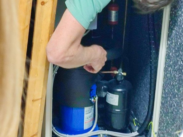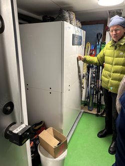 Bei unserer gestrigen Auftaktveranstaltung am 17.04.2024 in Oberammergau, informierten sich die Teilnehmer*innen u.a. über die dort realisierte Tiefengeothermie zur Einspeisung in die Wärmepumpe. Zwei getrennte Heizkreisläufe versorgen einerseits den Altbaubestand mit entsprechend hoher Vorlauftemperatur. Im neu ausgebauten Dachboden mit Fußbodenheizung wird eine niedrigere Vorlauftemperatur eingespeist. Dank der eigenen PV Anlage nach Nordost- und Südwest-Richtung kommt viel erneuerbare Energie zum Einsatz.