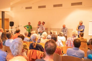 Zahlreiche Fragen zu Technik, zur Energiegenossenschaft und baulicher Aspekte wurden kompetent beantwortet. Dabei ging es natürlich um Energieautarkie, Landschaftsbild, Ökologische Aspekte und Klimaschutz aber auch um mögliche Renditen, Tierwohl und Bürgerbeteiligung.
