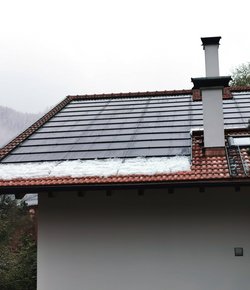 Es wurde eine in die Dachfläche integrierte Lösung realisiert, mit der wird Heizen und E- Auto fahren wirtschaftlich und günstig. Die so eingesparten CO2- Emissionen sind der gewünschte Effekt und das für uns alle so wichtige Sahnehäubchen.