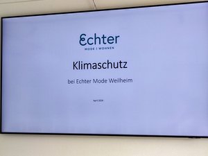 Damit ist man aber beim Modehaus Echter noch nicht zufrieden. Aus detaillierten CO2-Bilanzen für die einzelnen Häuser werden weitere Klimaschutzmaßnahmen abgeleitet. Die Anschaffung von Elektrofahrzeugen für das Unternehmen, Dienstreisen per Bahn oder auch das Angebot einer Mitfahr-App für die Mitarbeitenden sind weitere Maßnahmen, die zeigen, dass das Thema Klimaschutz sehr ernst genommen wird. Man hat sich auf den Weg gemacht und mit den getätigten Investitionen sehr beachtliche Erfolge erzielt.