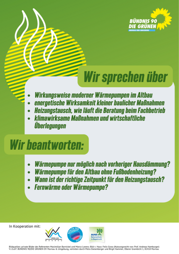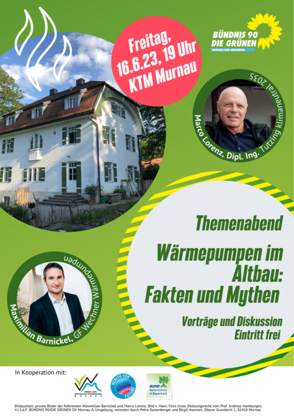 TIPP: Das nächste Leuchtturm-Projekt steht am 07. Juni an. Da geht es um die energetische Sanierung eines Privathauses, bei dem wir was zu Erdwärme und Wärmepumpe mit einer kombinierten PV-Anlage erfahren. Anmeldungen dafür gern an vorstand@gruene-murnau.de.