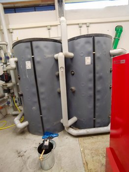 Die Heizung wird mit Biomasse (Pellets) betrieben, dazu 2 große Pufferspeicher a 1000l.