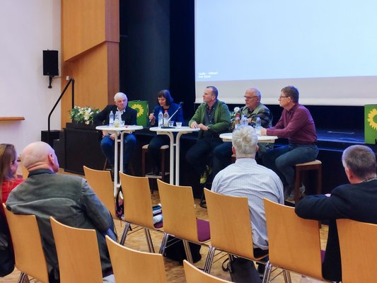 In der anschließenden Fragerunde gab es Gelegenheit zum Austausch zwischen den zahlreich anwesenden Landwirt*innen, Bürger*innen und Kommunalpolitiker*innen. Die Zuhörenden erkannten den guten Lösungsansatz und die Chancen, die sich hier bieten und konnten sich kaum vom Thema lösen. Auch im Anschluss bildeten sich noch zahlreiche kleine Diskussionsrunden. Moderator Robert Herz, Sprecher des Arbeitskreises Energie des Ortsverbands der Grünen in Murnau, führte souverän durch die Veranstaltung.