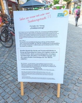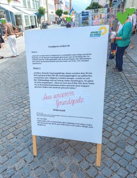 Menschen sind verunsichert, in der Gesellschaft macht sich eine politische Spaltung bemerkbar. Es gibt Zeitgenossen, die verkünden, Deutschland sei kein unabhängiger Staat und brauche einen Friedensvertrag. Gibt es in Murnau Protest dagegen? Zu hören ist, dass „die bloß spinnen“ und dass mensch sich nicht darum kümmern soll. In einer schwierigen Zeit wollen wir, wie auch andere vernünftige Menschen, auf unsere demokratische Verantwortung hinweisen. Wir fühlen uns den im Grundgesetz, unserer Verfassung festgeschriebenen Menschen- und Grundrechten verpflichtet. Thomas Wagner, Sprecher des Grünen Arbeitskreis für Demokratie: "Wir, treten auch deshalb in der Öffentlichkeit für das Grundgesetz ein, weil wir diese Alarmzeichen eben nicht ignorieren."
