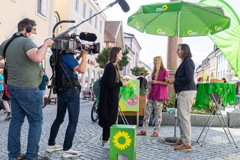 Der 18.09.21 war ganz schön turbulent und spannend. Wie immer, seit Anfang August, waren wir an unserem Infostand, schließlich war es das letzte Wochenende vor der Wahl und damit Grüne Power gefragt. Aufregend ging es los mit einem Interview und Filmdreh für Nano, das Wissenschaftsmagazin in 3 Sat, und es ging genauso nachmittags weiter mit prominentem Besuch aus Berlin. Bericht und Fotos von Dr. Anton Hofreiter findet ihr in unserer Bildergalerie.