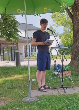 Adrian Kirsch ist über Instagram auf unsere Aktion aufmerksam geworden und ist extra aus dem Schwarzwald angereist, um uns tatkräftig zu unterstützen. In seiner Rede hat er deutlich gemacht, dass wir alle mit einbeziehen und die sozialen Aspekte der Klimamaßnahmen berücksichtigt werden müssen. Danke Adrian, dass Du dabei warst, gerne wieder.Im Text von Birgit Hammer wurde deutlich, dass nicht nur das Klima mit einem Tempolimit verbessert wird. Es trägt auch maßgeblich zur Verkehrssicherheit bei und muss endlich umgesetzt werden. Andreas Krahl, Mitglied des Bayrischen Landtags, hat uns mit einer Rede zum Thema Katastrophenschutz unterstützt, die vor allem deutlich machte: wir müssen uns besser vorbereiten. Wir brauchen Maßnahmen, die uns schützen und die uns wieder eine Perspektive bieten.