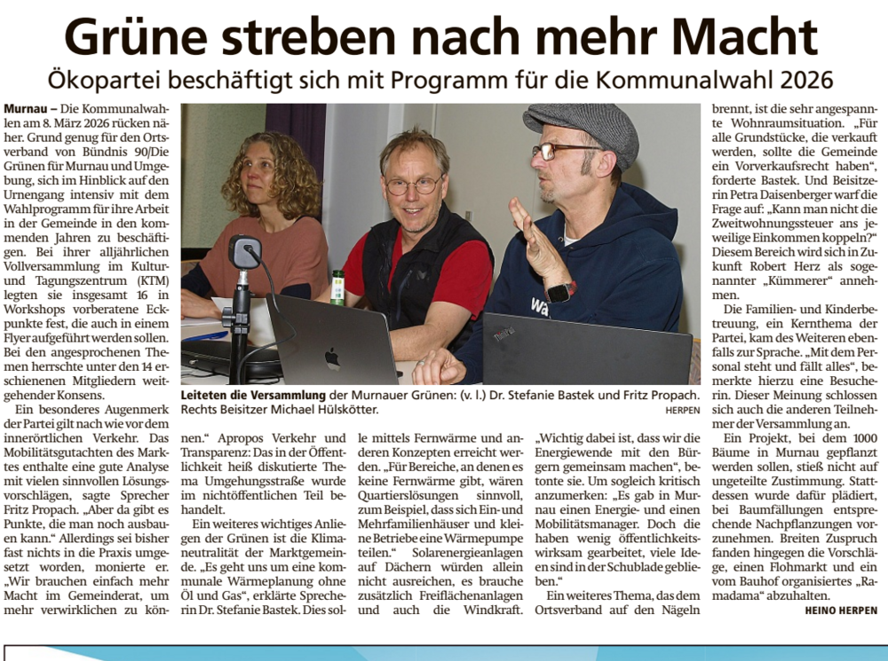 Ökopartei beschäftigt sich mit Programm für die Kommunalwahl 2026