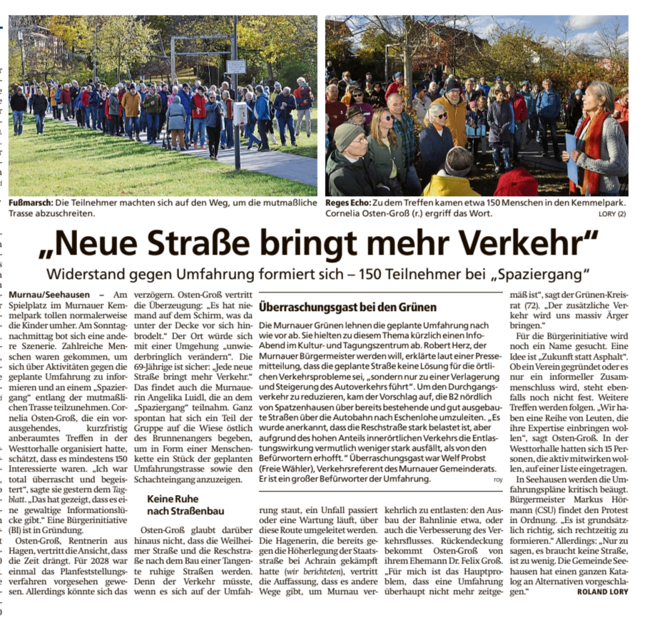 Murnauer Tagblatt: Bericht über den "Spaziergang" an der geplanten Trasse der Umfahrung und Kurzbericht über die Veranstaltung der Grünen vom 09.10.2025