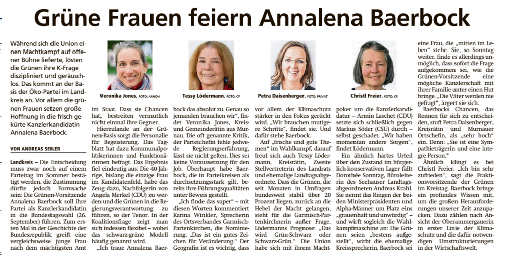 Berichterstattung zur Ernennung von Annalena Baerbock zur Kanzlerkandidatin - Erschienen im Murnauer Tagblatt am 21. April 2021.