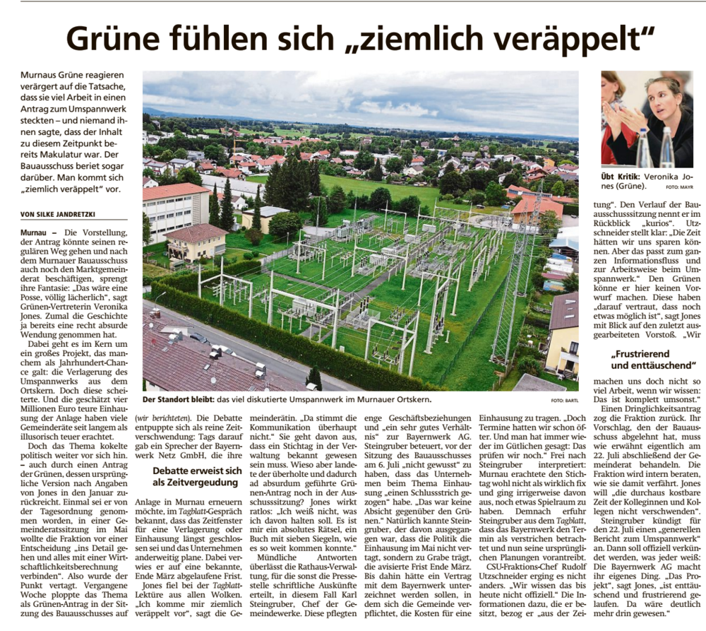 Breichterstattung über das Umspannwerk - Murnauer Tagblatt 14.07.2021