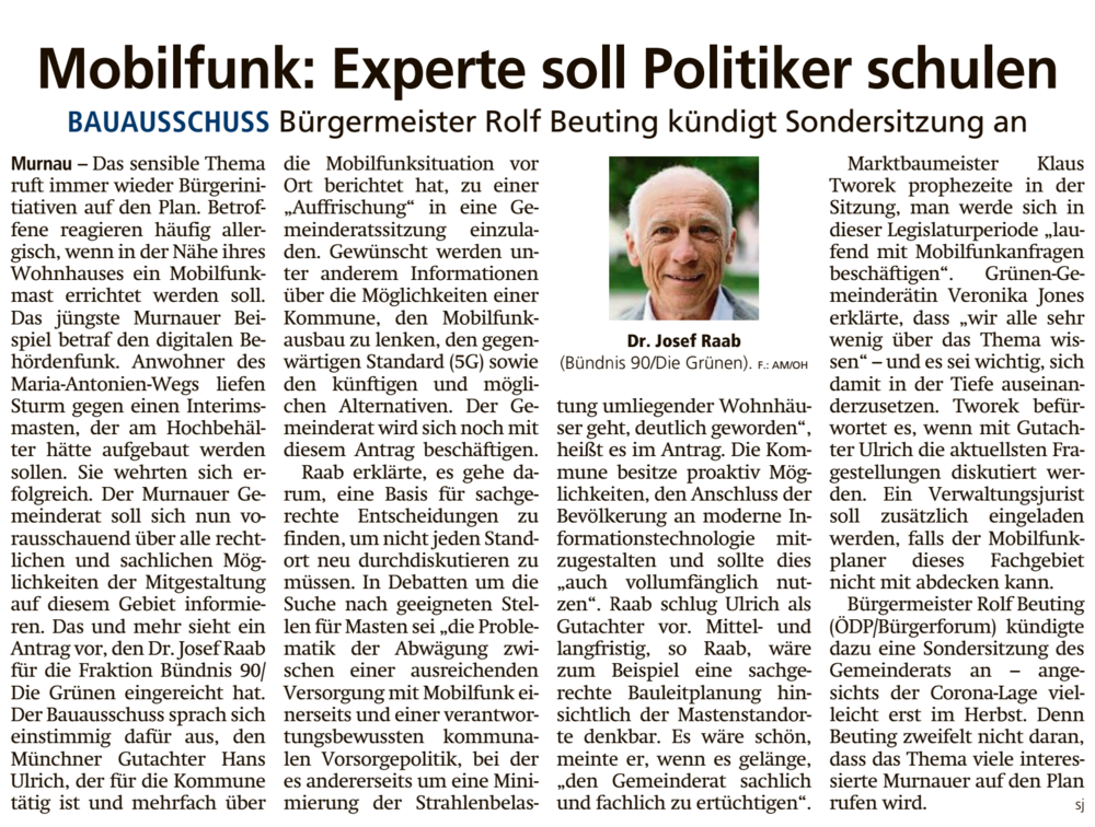 Berichterstattung zum Thema Mobilfunk - Erschienen im Murnauer Tagblatt am 07. Mai 2021.