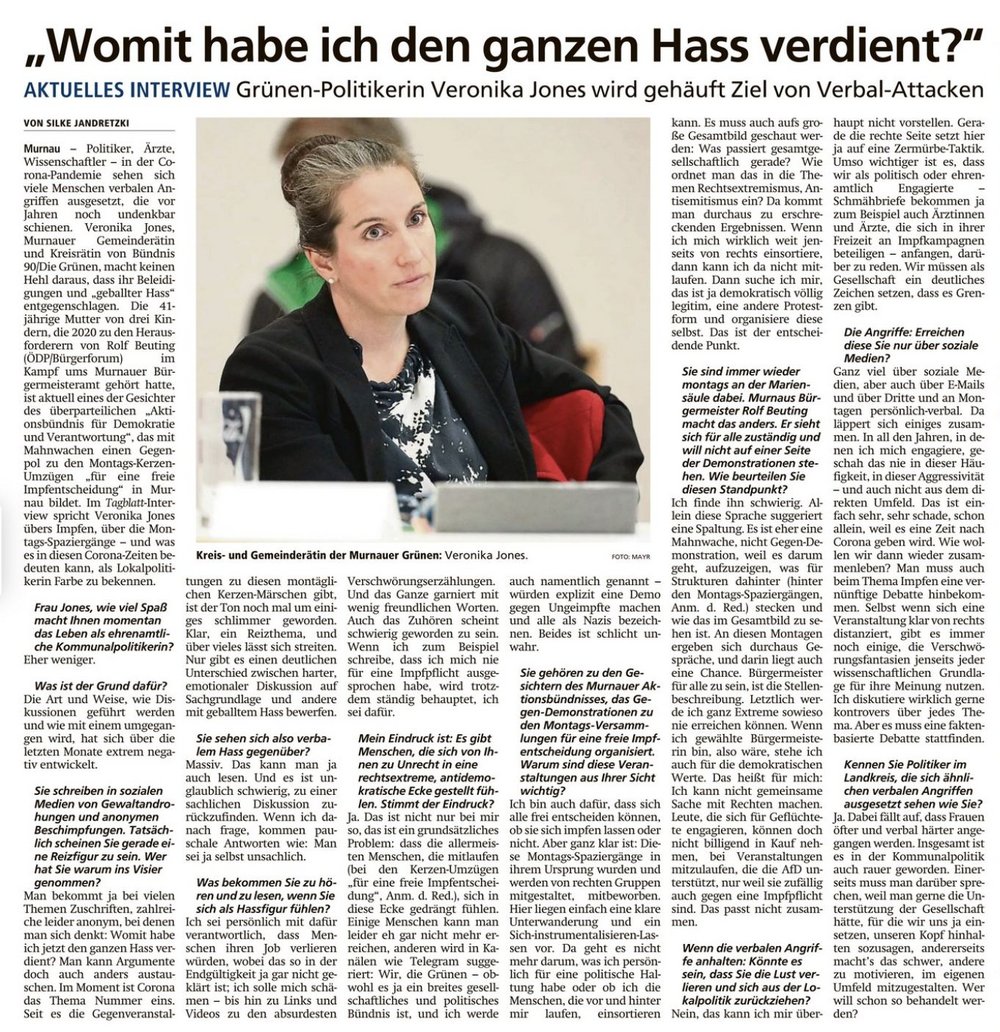 Unsere Gemeinderätin Veronika Jones in einem Interview im Murnauer Tagblatt