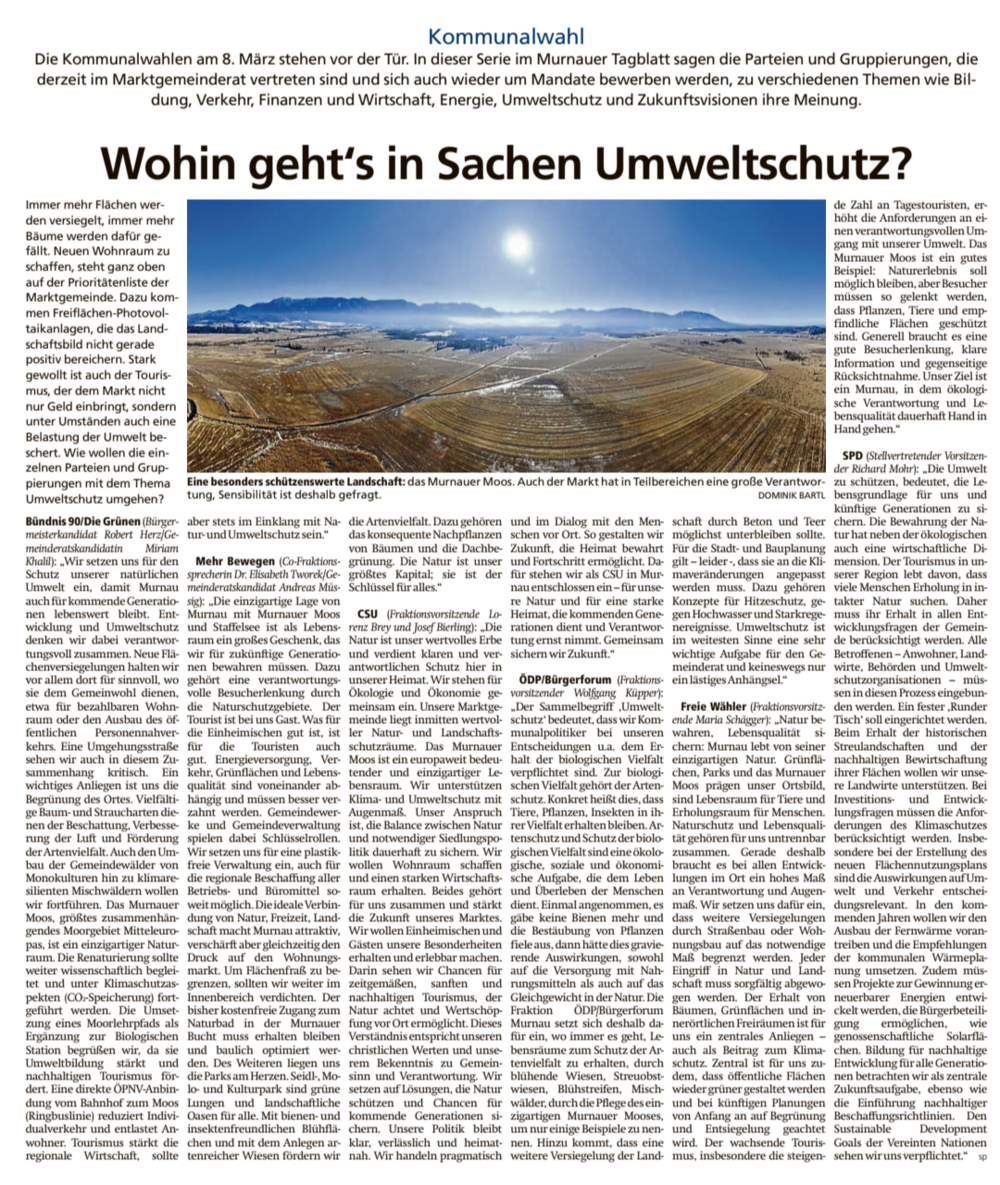 Die Kommunalwahlen stehen vor der Tür. In dieser Serie im Murnauer Tagblatt kommen alle Parteien, die sich um Sitze im Gemeinderat bewerben, zu verschiedenen Themen zu Wort.