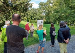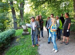 Dieter Wieland, Dokumentarfilmer, Autor und Fernsehjournalist und 1. Vorsitzender des Förderkreis Murnauer Parklandschaft e.V. führte den Gast aus dem Bayrischen Landtag und die weiteren Gäste, die auf Einladung von Tobias Steurer, Sprecher des Arbeitskreis Tourismus, Kultur und Ortsgestaltung des Grünen OV Murnau & Umgebung der Einladung gefolgt waren, durch den Murnauer Seidlpark.