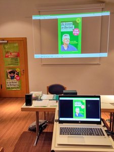Einige Fotos, z.B. mit der Sprecherin des Ortsverbands Murnau & Umgebung Petra Daisenberger, sind vor der Veranstaltung entstanden. Wir hatten natürlich Zuschauer*innen, hätten uns aber mehr Teilnahme gewünscht, denn es war Mega interessant und wird hoffentlich nochmal an anderer Stelle wiederholt, bzw. gezeigt werden.